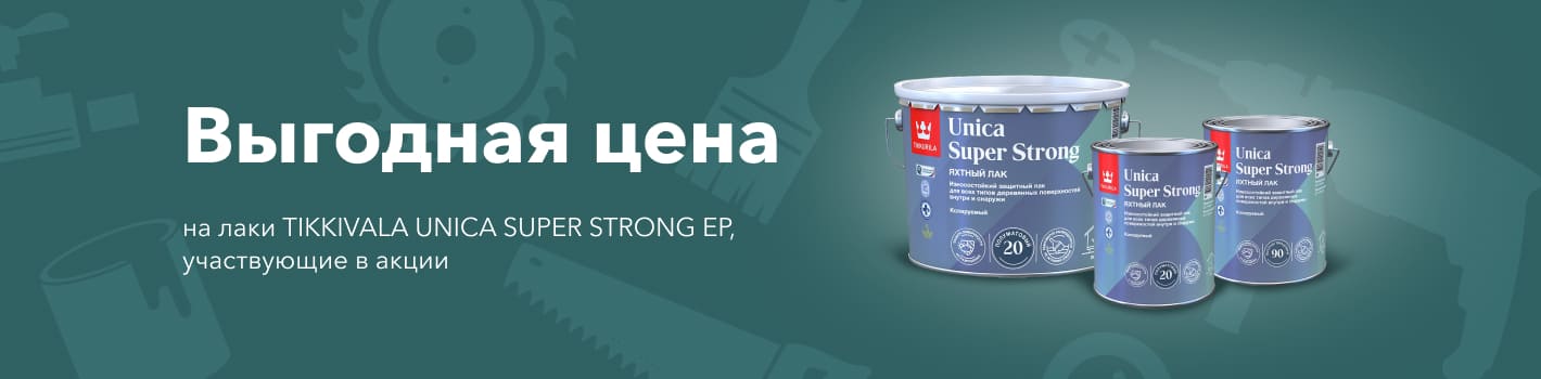Выгодная цена на лаки TIKKIVALA UNICA SUPER STRONG EP глянцевый, 2,7 л, TIKKIVALA UNICA SUPER STRONG EP полуматовый, 2,7 л и TIKKIVALA UNICA SUPER STRONG EP полуматовый 9 л