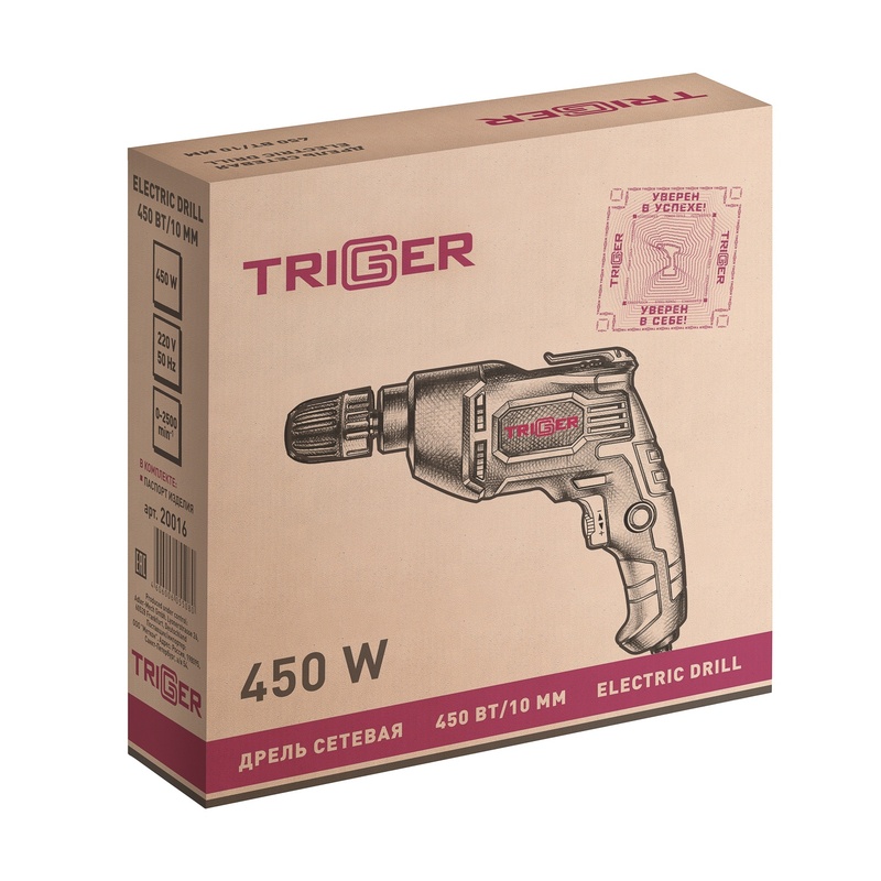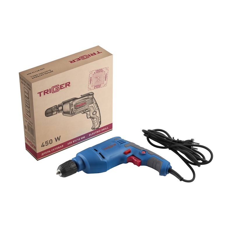 Дрель безударная сетевая Trigger 20016, 13 мм, БЗП, 0,45 кВт, реверс, 0-2500 об/мин