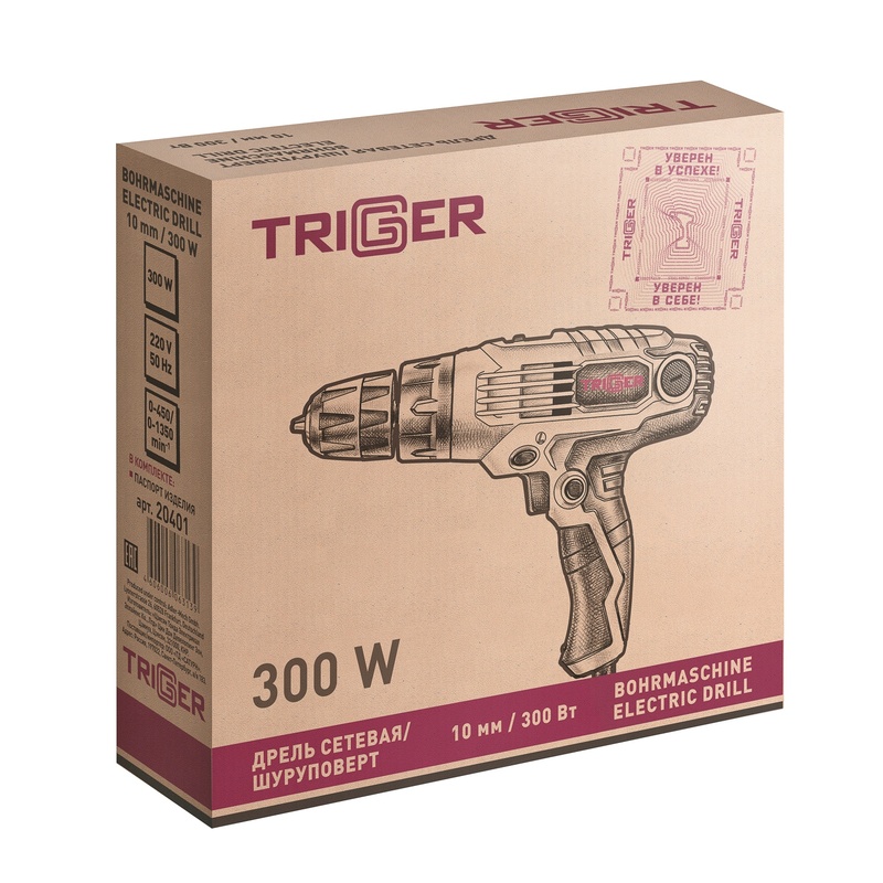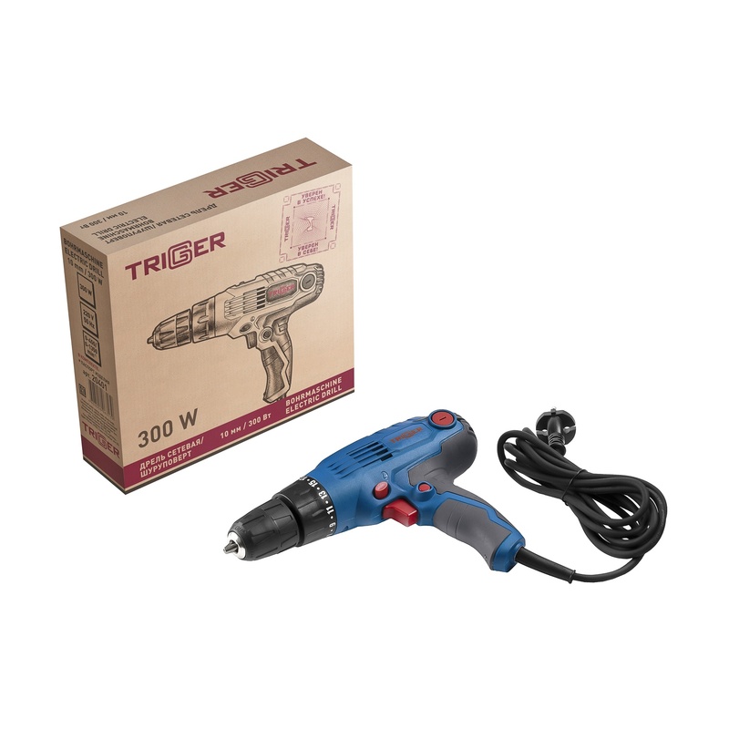Дрель-шуруповерт сетевая Trigger 20401, 10 мм, 0,32 кВт, 32 Нм, реверс, 0-1000 об/мин