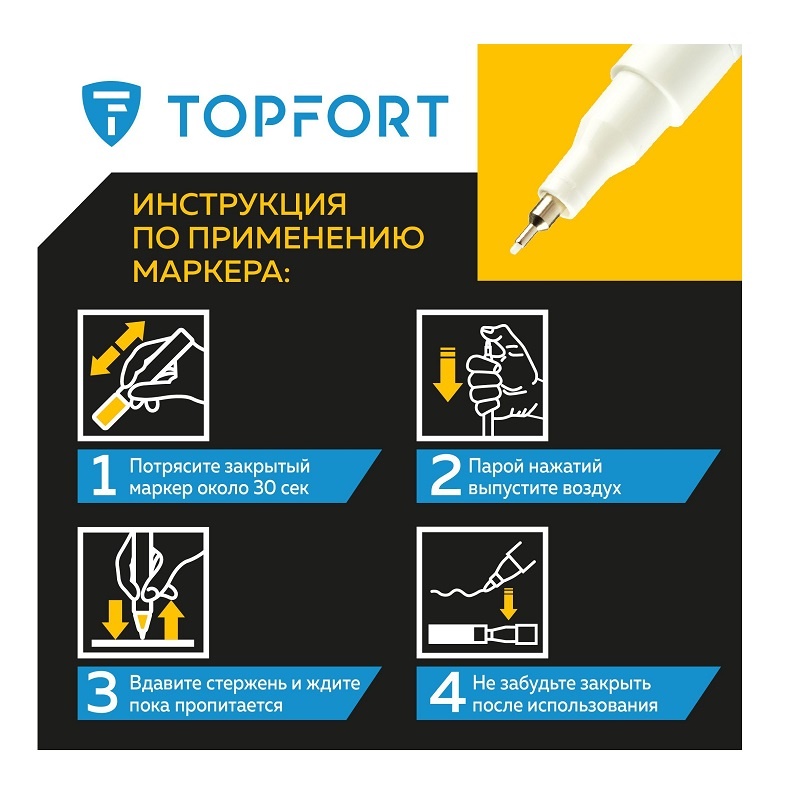 - Клапанный механизм пишущего узла исключает растекание и разбрызгивание краски, преждевременное пересыхание маркера.