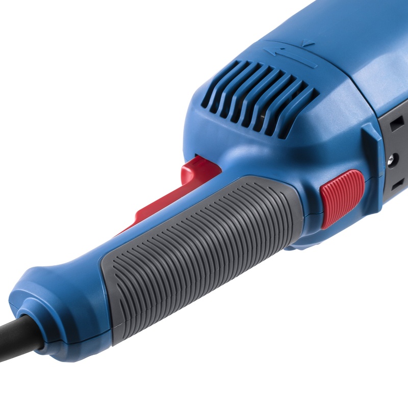 - Поворотная основная рукоятка для удобной работы в разных положениях (резка или шлифовка).