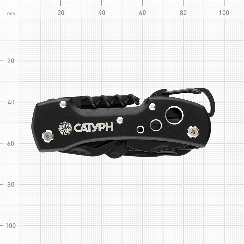 - Большой набор полезных инструментов: нож, пила, шило, штопор, надфиль, ножницы, отвертка крестовая, игла для кожи, рыбный нож, открывалка бутылок, консервный нож, карабин.