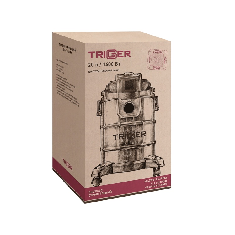 Пылесос строительный сетевой Trigger 20700, 1400 Вт, бак 20 л, кабель 4 м