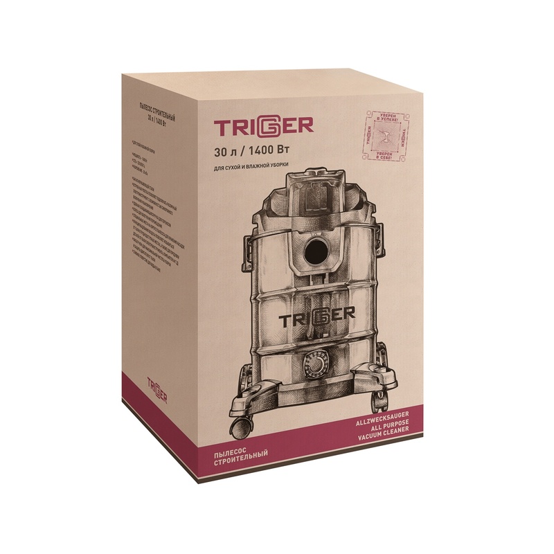 Пылесос строительный сетевой Trigger 20701, 1400 Вт, бак 30 л, кабель 5 м