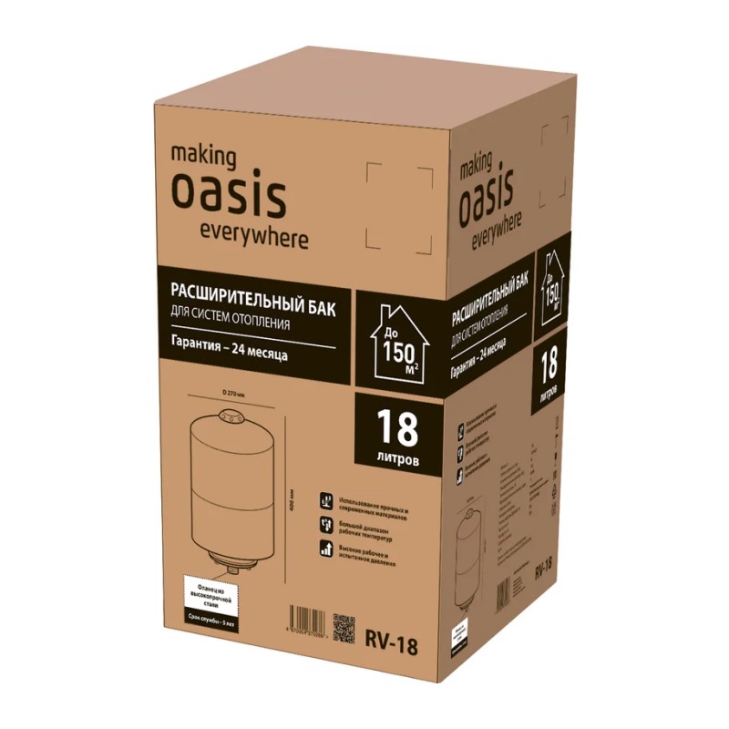 Бак Oasis мембранный, 8 бар, 18 л, расширительный, вертикальный, сталь