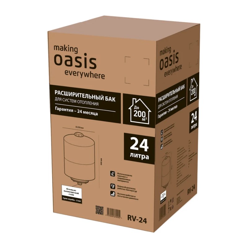 Бак Oasis мембранный, 8 бар, 24 л, расширительный, вертикальный, сталь