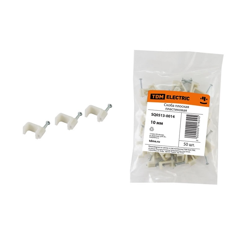 Скоба для кабеля d=10мм плоская (50 шт.)