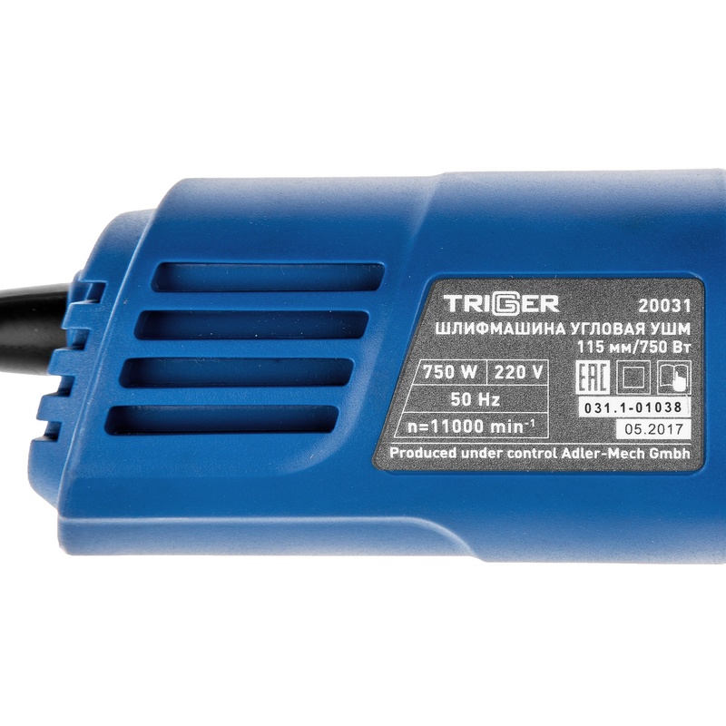 Шлифмашина угловая УШМ сетевая Trigger 20031, 0,75 кВт, d=115 мм