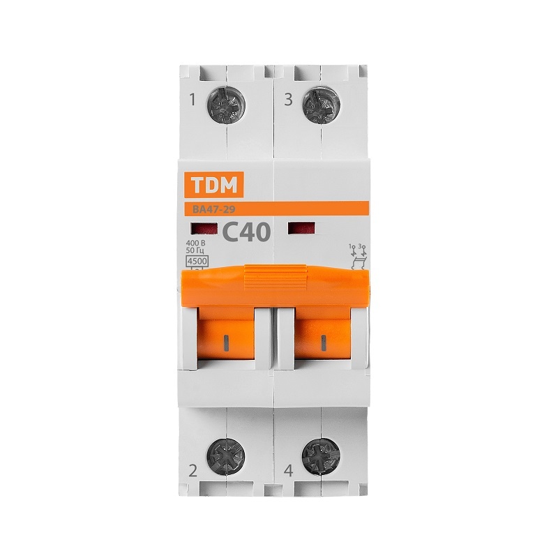 Выключатель автоматический TDM ВА 47-29, 4,5кА, С 40А, 2П