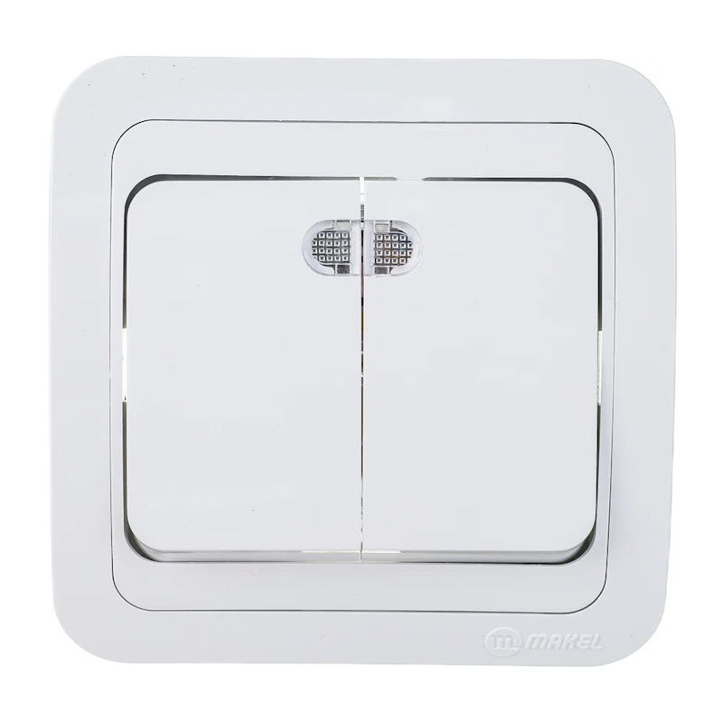 Выключатель с/у Mimoza 12023, 2 клавиши, с/инд, белый